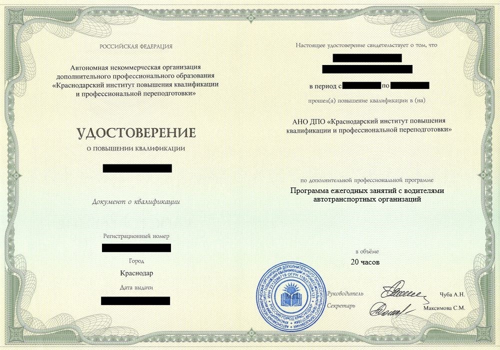Курсы повышение квалификации программа ежегодных занятий с водителями автотранспортных организаций в Москве