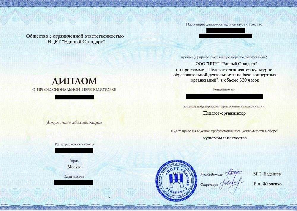 • «Педагог-организатор» с правом ведения профессиональной деятельности в сфере культуры и искусства