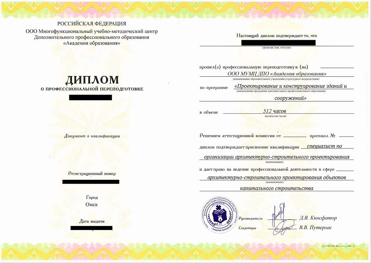 - Диплом о профессиональной переподготовке установленного государством образца. Срок действия: бессрочно